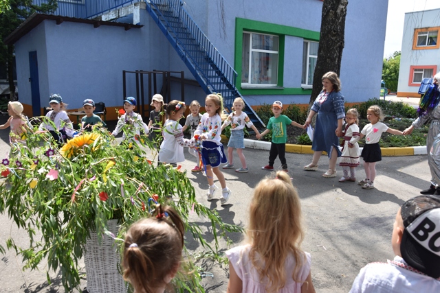 святковому майданчику, наші вихованці прикрашали квітами та стрічками Марену –