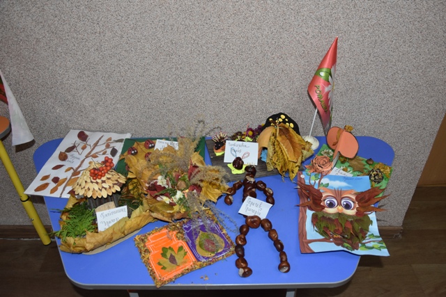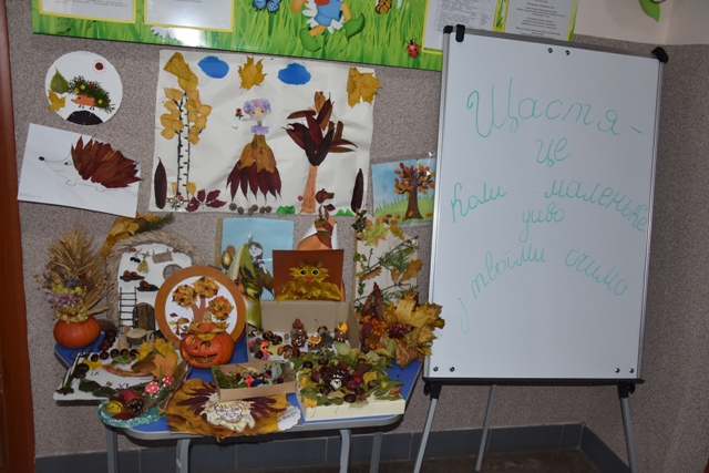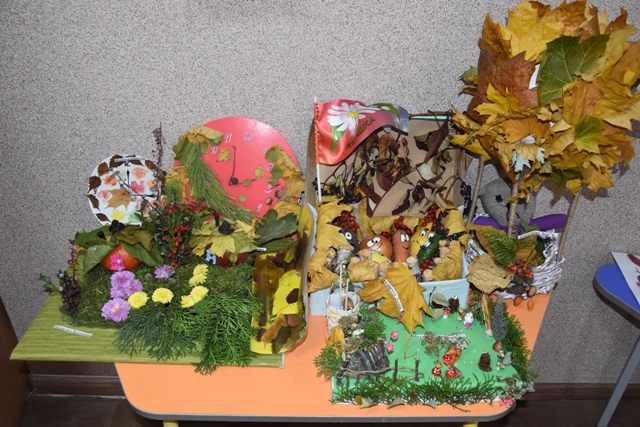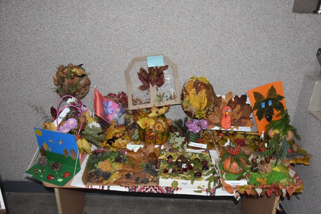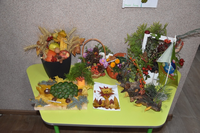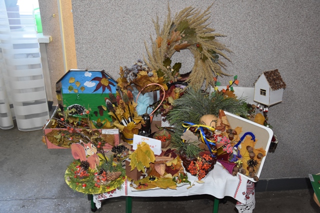 Батьки допомогли своїм діткам проявити фантазію, створити неповторні осінні шедеври. Були представлені дивовижні композиції із природного матеріалу: чудернацькі чоловічки, лісові галявини з тваринами, казкові будиночки та багато чого цікавого. І все це виготовлене з інтересом, любов'ю та неабиякою фантазією.