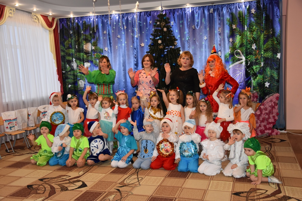 Який же Новий рік у дитячому садку без костюмів? Мами одягають найкращі костюми для своїх дітей, адже яке ж свято без перевтілення в казковий образ? Яких тільки костюмів не було на святі - годинники, зефірки, цукерочки, вогники, кіндер-сюрпризи, кульки, пірати. Музичний керівник, Дайна Вікторівна, приготувала цікаві сценарії свята для дітей. Для молодших груп «Кульки намистинки - прикраси для ялинки», середніх «Смаколики від ельфа», старших «Снігова королева».